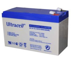La también conocida como Batería Ultracell UC 8-12, esta batería se caracteriza por, en comparación con otras baterías del fabricante Ultracell, tener un peso y unas dimensiones reducidas. Concretamente el peso es de 2,45Kg y las dimensiones son de 151 x 65 x 99 mm (± 2 mm). Trabaja a 12V y en C20 a 8Ah