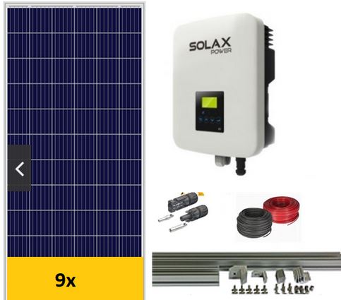 Kit de autoconsumo solar monofásico de 3300W compuesto por módulos solares policristalinos de 375Wp, sistema de montaje para cubierta, inversor solar de conexión a red, caja seccionadora de continua y elementos de interconexión como conectores solares y cable solar. Ideal para instalaciones residenciales o pequeñas instalaciones comerciales con conexión a la red eléctrica. Sistema solar fácil de montar y modular para generar rápidamente ahorros en el consumo de electricidad de la red eléctrica.